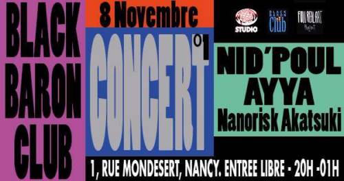 Le mercredi 8 novembre concert au Black Baron Club - 1 Rue Mondesert, Nancy. Au programme :