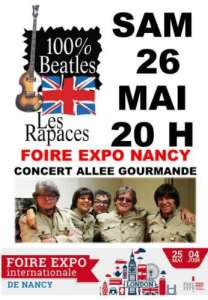Les Rapaces vous proposent un concert 100 % Beatles pour la 1ère nocturne de la Foire samedi 26 mai de 20h00 à 22h00 sur le Podium !