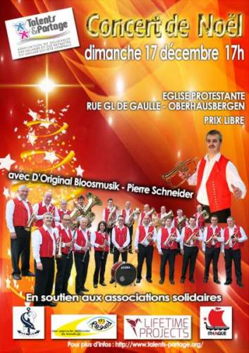 Sous la houlette de son directeur musical Pierre Schneider, véritable défenseur de la vraie et authentique musique alsacienne, l’orchestre « D’original Bloosmusik Pierre Schneider » donnera un concert, dans un répertoire spécifique, à l’occasion de la période de Noël.