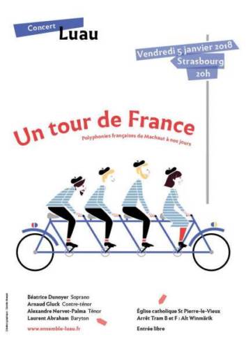 Il vous convie à son nouveau programme "Un tour de France", réunissant des polyphonies allant de la messe de Notre Dame de Machaut, jusqu’à des pièces du XXIème siècle en traversant notamment la Bretagne, la Corse, la Provence et l’Alsace.