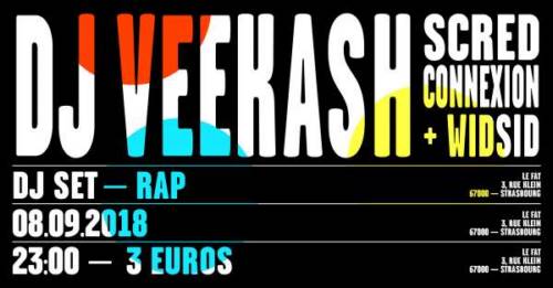 DJ VEEKASH , n’est plus à présenter dans le milieu du Hip hop héxagonale, aprés une quinzaine d’années d’activisme, Dj Veekash a collaboré avec un bon nombre d’artistes Francais,Europeens et Americains(Koma, La Rumeur, Guru(Gangstarr), AFura, Keith Murray ,Kohndo ,Nasme, Foudealer, Atlars mc scandinave qu il produit depuis pres de 10 an et qu’il accompagne lors de ses tournées en Norvège,Danemark ).,il a participé à de nombreux championnats de France DMC/Numark... et écumé les salles et festivals français. DJ officiel de la Scred Connexion en 2009/2010 ,en 2011/2012 DJ officiel de Rocé lors de sa tournée ,D’origine mauricienne il rejoint la Mauritian All Star (groupe hiphop mauricien) depuis 2012 , a noté qu’il repart en tournée depuis 2013 avec la Scred Connexion