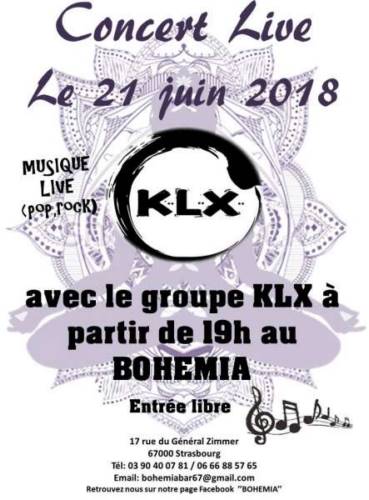 Pour la fête de la musique Jeudi 21 juin le BOHEMIA accueil le groupe KLX (pop/rock) pour un concert live qui débute à 19h.