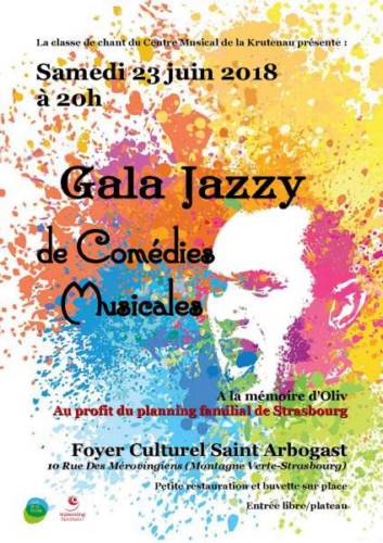 La classe de chant du Centre Musical de la Krutenau vous convie à son Gala Jazzy, entre grands standards vocaux et extraits des plus belles comédies musicales de Broadway : Chicago, Grease, Les Misérables, Hair...