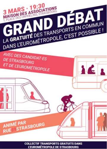 Dans le cadre des élections municipales et eurométrpolitaine de mars 2020, notre collectif organise un grand débat sur le thème de la gratuité des transports en commun.