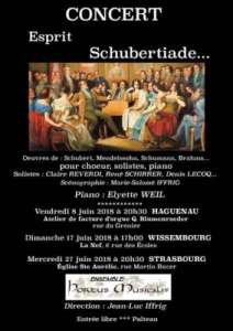 L’ensemble Hortus Musicalis, sous la direction de Jean-Luc Illfrig, vous propose des oeuvres, entre autres, de Schubert, Mendelssohn, Schuman, Brahms. pour choeur, solistes, piano Elyette Weil Solistes : Claire Reverdi, René Schirrer, Denis Lecoq. Piano, sur une scénographie de Marie-Salomé Iffrig.