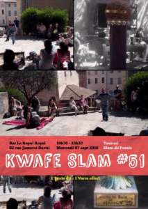 Amoureux des mots et de l’oralité rejoignez le Kwafe Slam mercredi 07 SEPTEMBRE, au Royal à partir de 19h30.