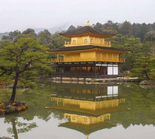 Avant d’être un roman, le pavillon d’or désigne un temple bouddhiste du nord de Kyoto, le Kinkaku-ji, temple dont les murs du pavillon principal sont recouverts de feuilles d’or. Construit au 14ème siècle, ce monument est aujourd’hui inscrit au patrimoine mondial de l’UNESCO. C’est de sa destruction en 1950 dans un incendie volontaire, que Mishima tira son roman...