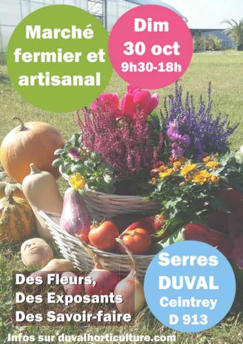 Les Serres DUVAL Horticulture à Ceintrey vous invitent à un marché fermier et artisanal le dimanche 30 octobre de 9h30 à 18h.
