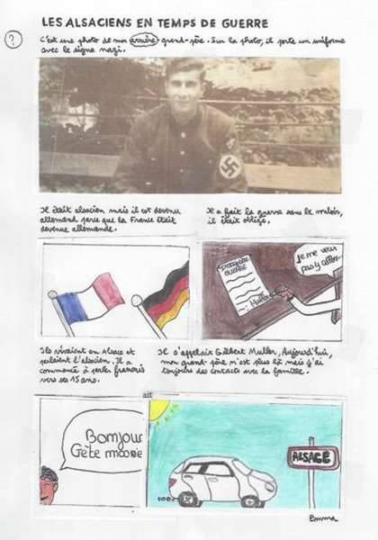 Exposition des planches de l’album BD "Notre Histoire" réalisée par les élèves de la classe de 4e du Collège Evariste Galois (Algrange) en collaboration avec Jérôme RUILLIER, illustrateur jeunesse, dans le cadre d’ateliers avec pour projet, l’illustration de témoignages familiaux.
