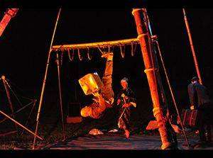 Par la COMPAGNIE ARMANCE BROWN / BRUNO KRIEF.Fragile passerelle entre temps suspendus, entre espaces horizontaux et verticaux, un voyage au parfum extrême-oriental pour trois artistes sous un tripode en bambou géant.!