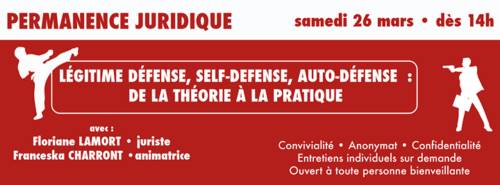 Cette permanence juridique sera animée selon 2 versants : un volet théorique par une juriste qui détaillera l’état du droit français en la matière, et un volet plus pratique animé par une spécialiste des techniques d’auto-défense.