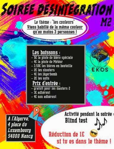 Pour finir de désintégrer nos masters après le laser game, Ekos organise une soirée en leur honneur le mercredi soir :)