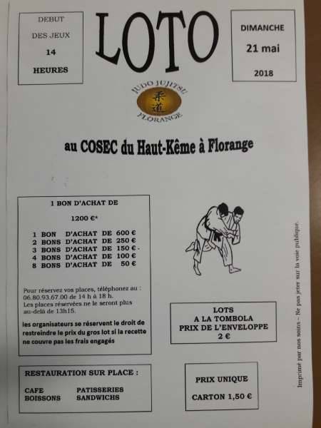 Le loto de la section Judo/Ju Jitsu de Florange aura lieu le lundi 21 mai 2018 au COSEC (Début des jeux à 14h00).