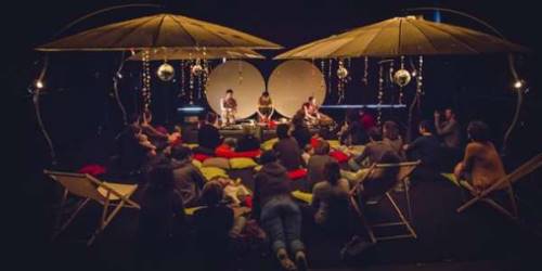 Cette sieste musicale pour les tout-petits prend place au creux d’un nid douillet baigné de formes lumineuses projetées. Pendant près d’une demiheure, les spectateurs sont invités à se laisser bercer par une musique délicate et lunaire composée pour l’occasion avec des jouets musicaux du monde entier.