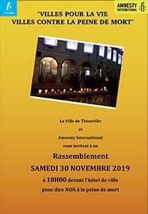 Un rassemblement se tiendra devant l’hôtel de ville, samedi 30 novembre 2019 à 18h00, pour dire NON à la peine de mort.